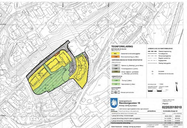 Ravnsborgveien 18 in Asker - 19 terraced houses. The areaplan was approved 10.11.2020.
