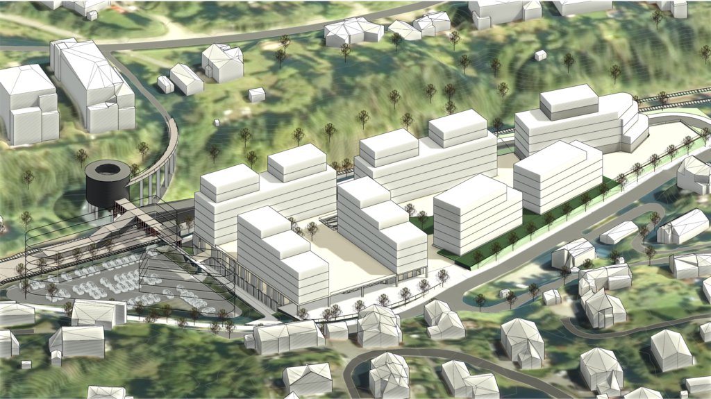 Borgen in the municipality of Ullensaker - mixed use development with commercial and residental spaces. The areaplan is in process, and the work is done in collaboration with Norconsult.