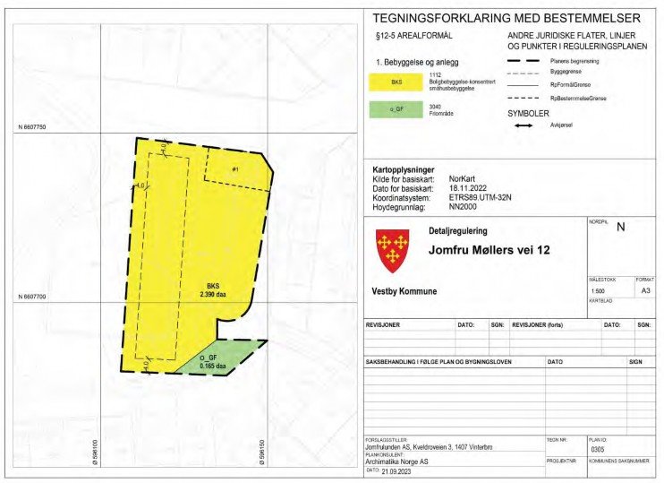 Jomfru Møllers vei 12 in the municipality of Vestby - 10 detached houses. The areaplan was approved 12.02.2024.