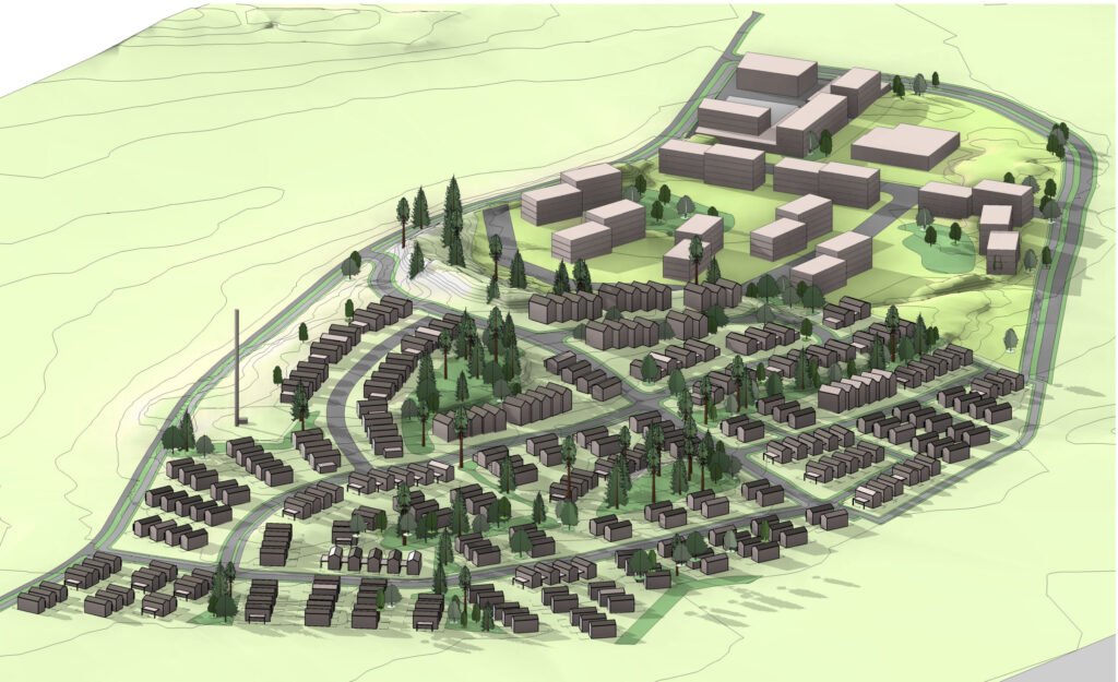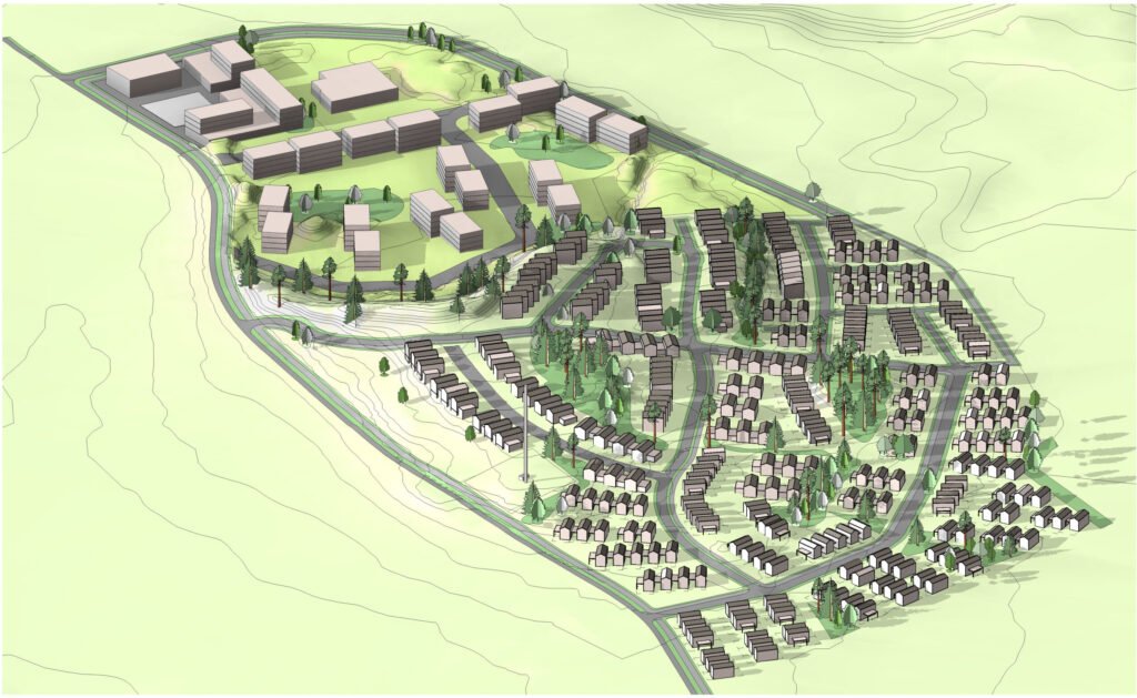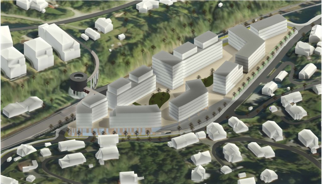 Kvernberget in the municipality of Nes - mixed use development with housing and commercial spaces. The areaplan is in process.