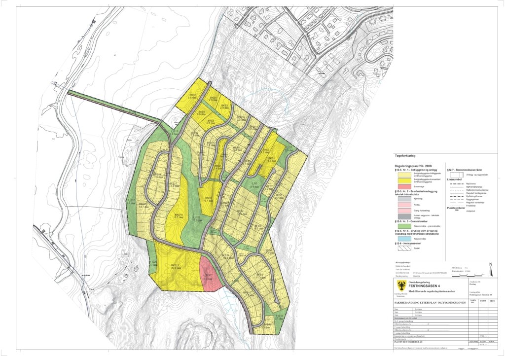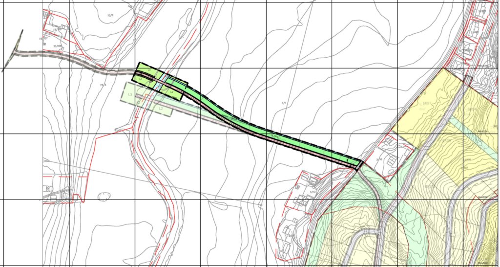 Festningsåsen 4 in the municipality of Aurskog-Høland. We have extensive experience with changes to regulations in accordance with section 14-12 of the Planning and Building Act. In the project below a route for a walking and cycling path had to be changed due to a collision between the planned foundation for the new bridge and existing water and sewage pipes.