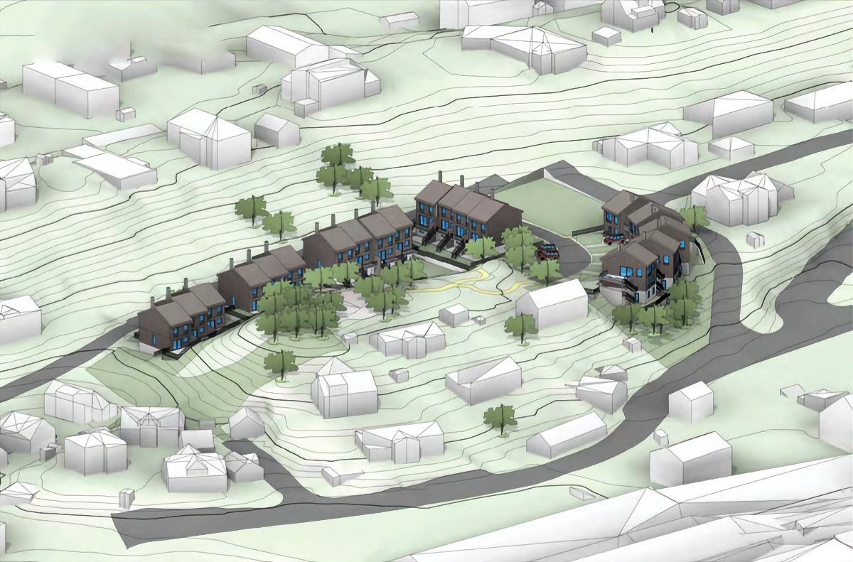 Ravnsborgveien 18 in the municipality of Asker - 14 terraced houses and 5 semi-detached houses. The general permit was awarded 21.04.2021, see reference S21/1007.