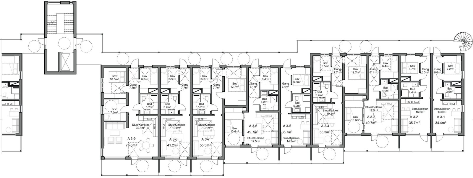 This is the same project as the one above, but in a previous version that was awarded a building permit in November 2019. The project had to be downsized, and this shows Archimatikas flexible approach to planning.