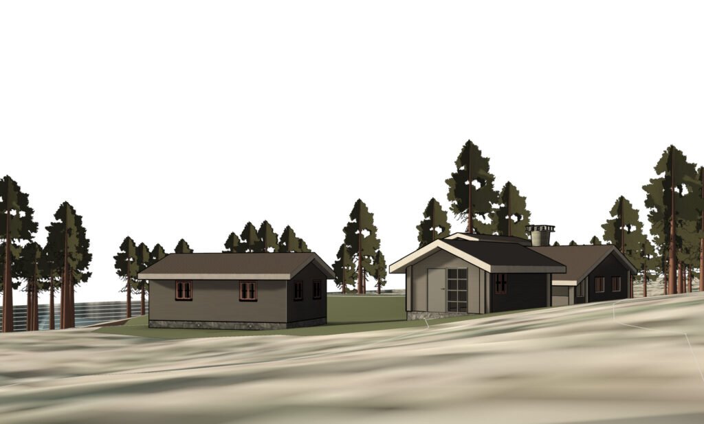 Pollfoss in the municipality of Skjåk. This special project consists of 3 old buildings that will be set up as a courtyard at Pollfoss after having being moved from the previous location at Snarøya. The buildings will be used for different purposes in the community as well as a typical unmanned cottage by The Norwegian Trekking Association (DNT).