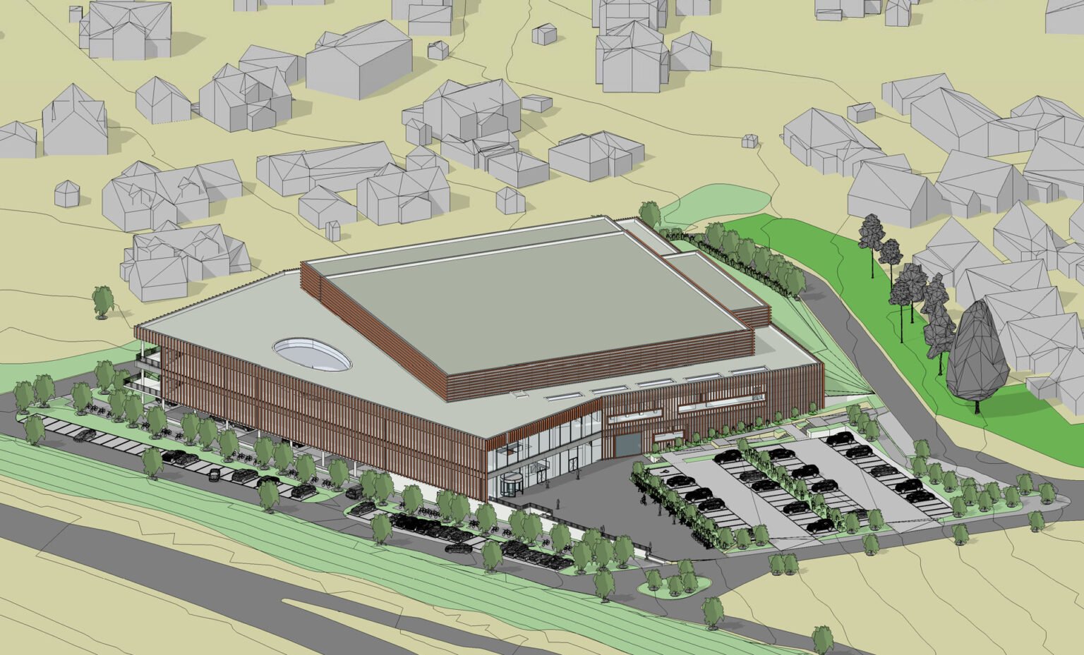 Årvoldveien in the municipality of Moss - a midsize conference center with a gross area of appr. 5000 m2. The general permit was awarded 3.11.2023, and construction work is due to be finished in Q2 of 2025.